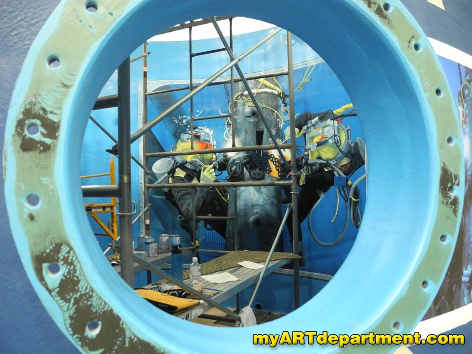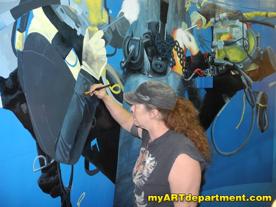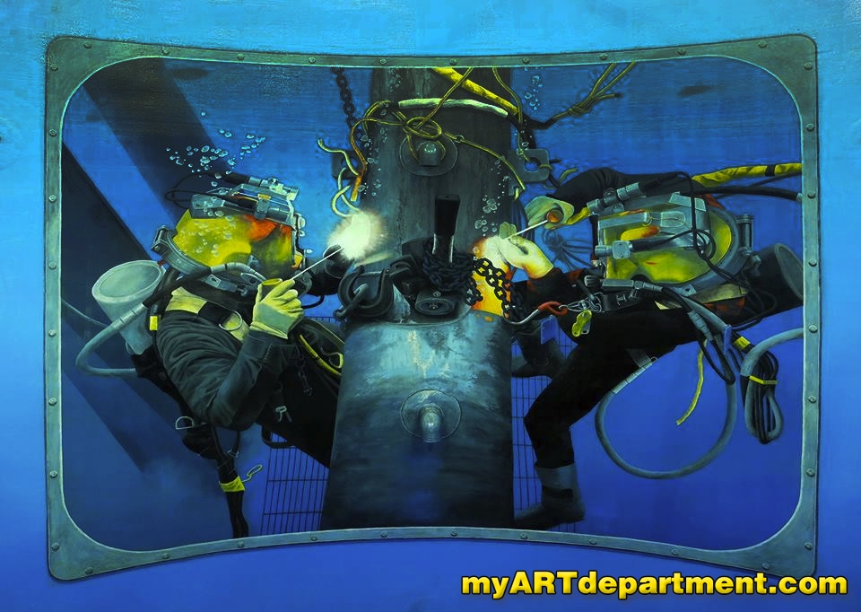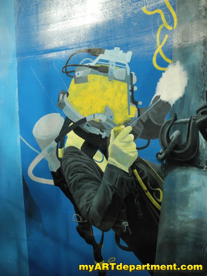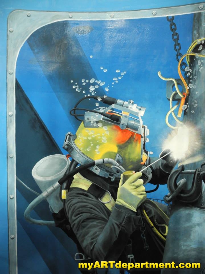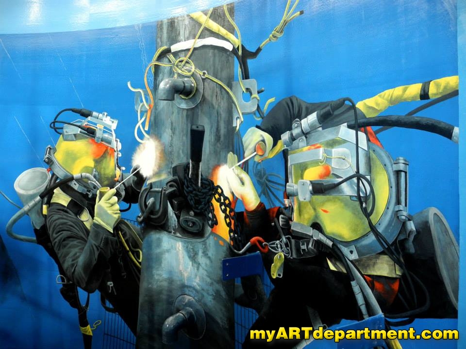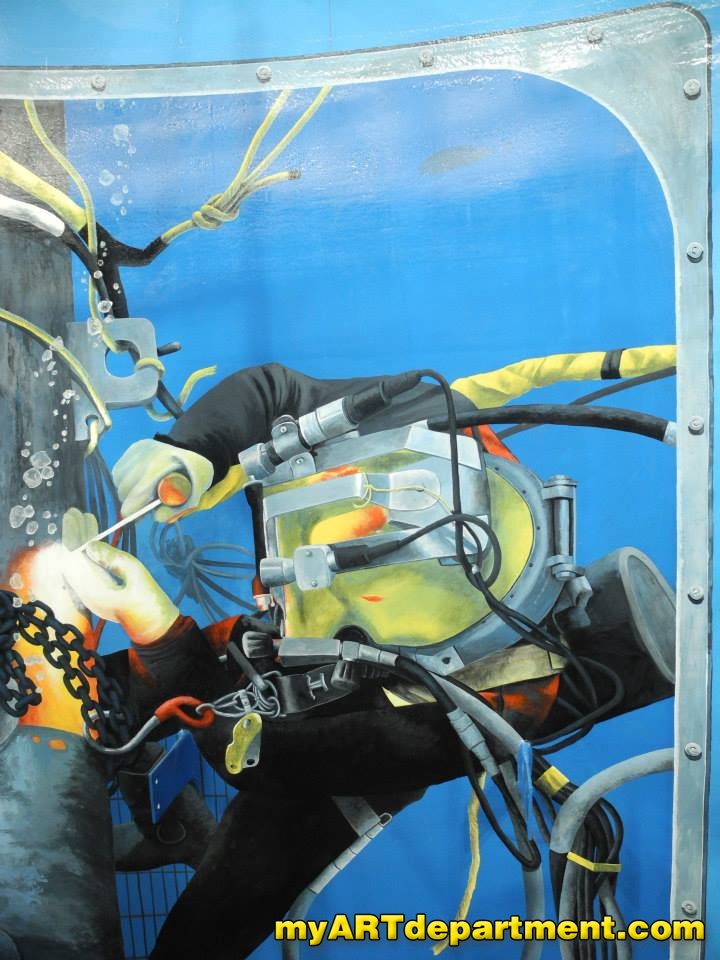 It turned out they had a new Diving Tank to be installed to be used for training underwater welding. They wanted a mural to show the underwater welding process so that it could be viewed through portholes when training was not in session.