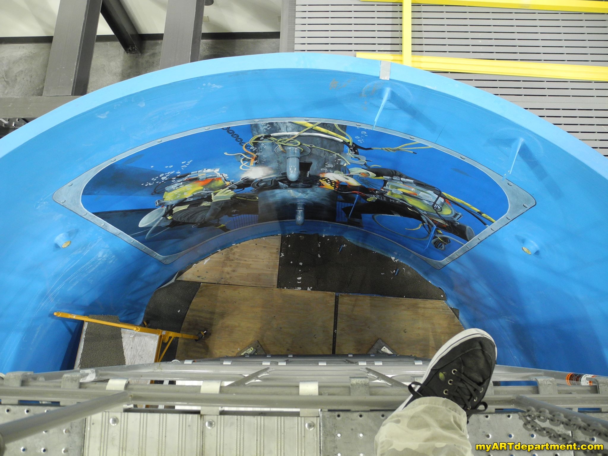 After almost 3 weeks, the mural is done! Here’s a composite panorama image showing the whole mural. It’s a little distorted due to the shooting angles and close distance (plus the tank is curved!).